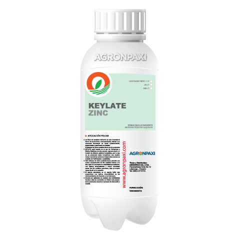 Aporte de Zinc con tecnología de quelatamiento a base de poliaminas, lo que brinda una muy rápida asimilación del elemento por medio de la lamina foliar y pared celular.